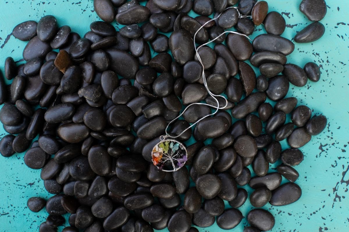 Rock Jewelry Multi-Stone Tree of Life Pendant with Chain